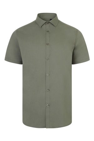 Camisa de manga corta con tejido elástico y diseño entallado. Estilo y funcionalidad para el día a día en hostelería.