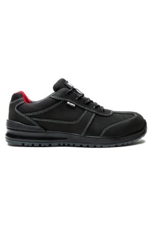 Zapato de seguridad S3 ESD sin metal, con puntera de composite, plantilla textil, corte en piel nobuck resistente al agua y suela PU de doble densidad.