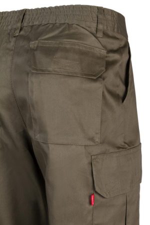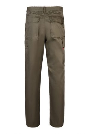 Pantalón multibolsillos funcional con cintura elástica y refuerzos. Ideal para el trabajo diario.