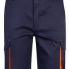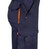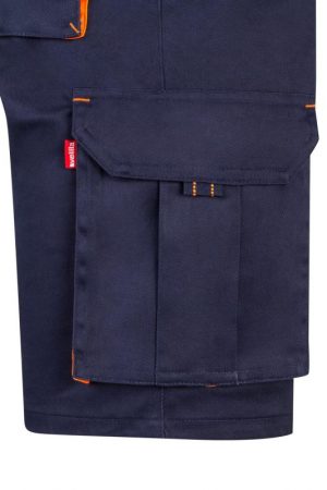 Bermudas de trabajo elásticas con diseño bicolor, múltiples bolsillos y cinturilla elástica. Ideal para comodidad y resistencia en el trabajo.