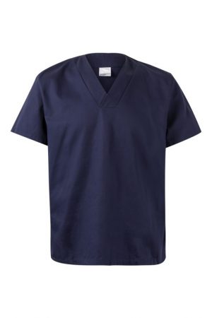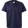 Camisola unisex de manga corta con cuello en pico y aberturas laterales. Comodidad y funcionalidad en el entorno laboral.