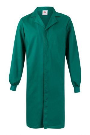 Bata laboral con cierre de automáticos ocultos y puños de canalé, diseñada para ofrecer comodidad, durabilidad y facilidad de uso en entornos profesionales.