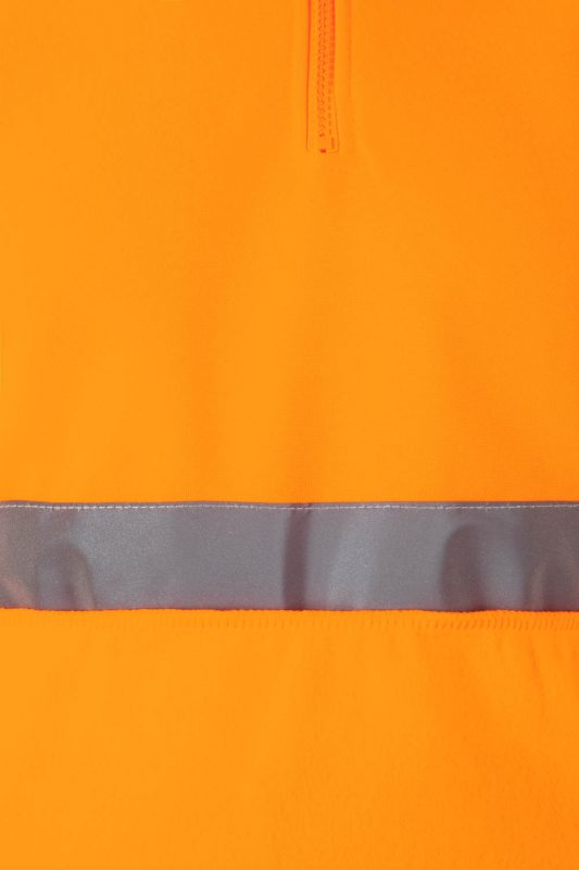 Sudadera de alta visibilidad con media cremallera, cintas segmentadas termofijadas y tejido térmico. Seguridad y confort en una sola prenda.