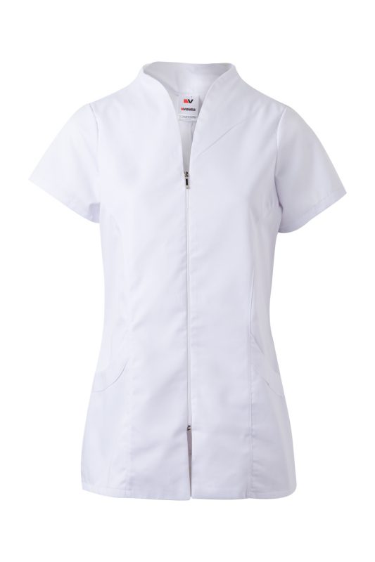 - Perfecta para profesionales de la salud, estética, limpieza o atención al cliente que buscan una chaqueta ligera, con buen ajuste y fácil de cuidar.