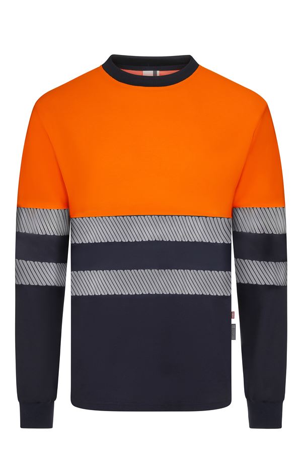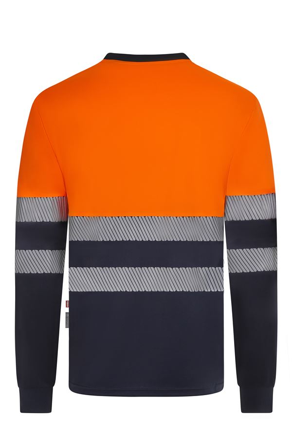 Camiseta de manga larga con cintas reflectantes segmentadas. Alta visibilidad clase 1 según EN 20471. Diseño bicolor, comodidad y máxima visibilidad.
