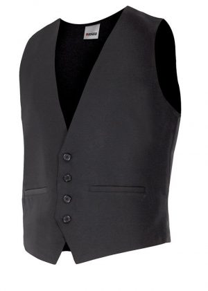 Chaleco elegante y funcional sin solapa, ideal para profesionales de sala que buscan una imagen cuidada, comodidad y fácil mantenimiento diario.