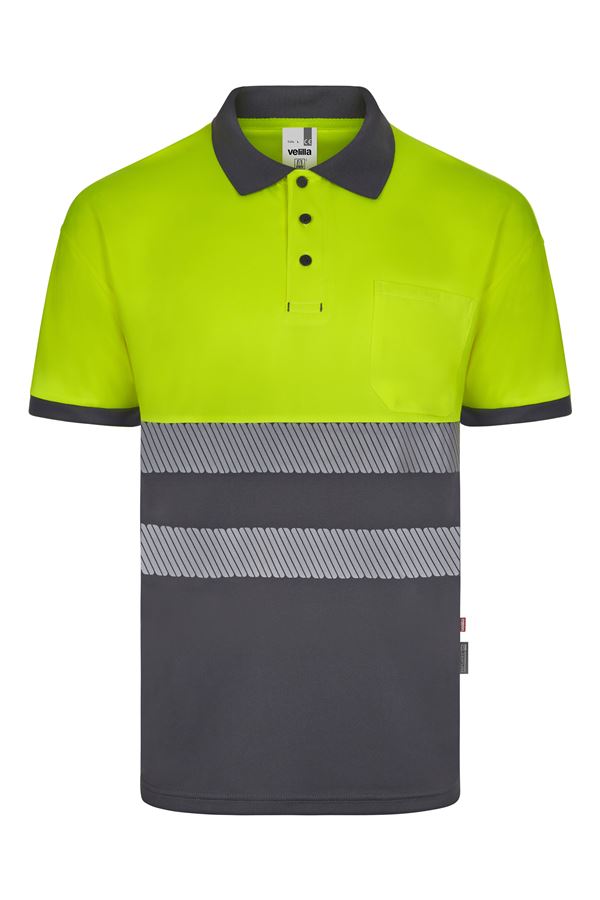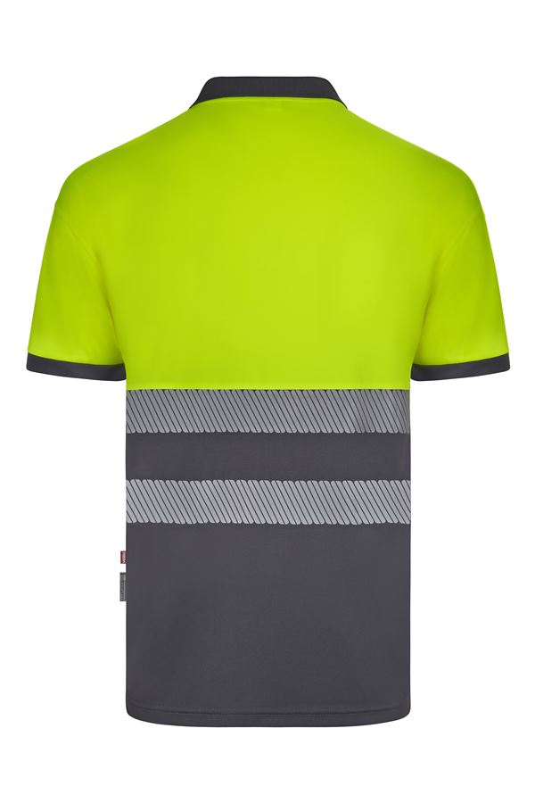 Polo bicolor alta visibilidad poliéster reciclado manga corta cintas segmentadas 305533 | VELILLA