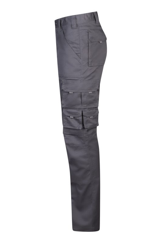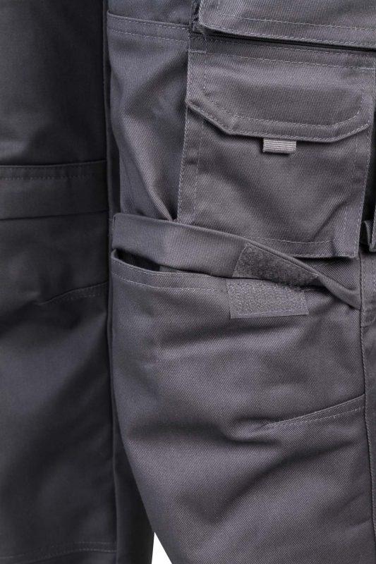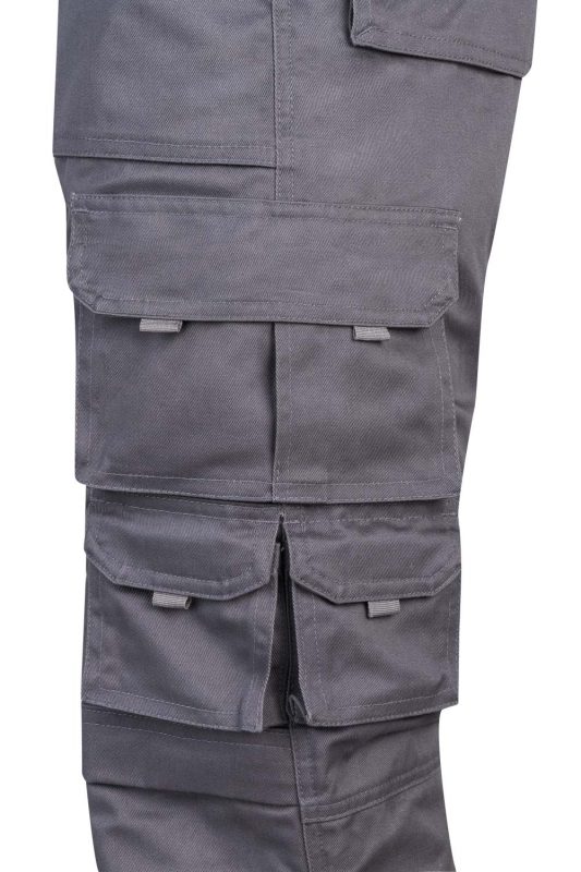 Pantalón de trabajo resistente con múltiples bolsillos, refuerzos en zonas clave y compartimento para rodilleras. Ideal para tareas exigentes.