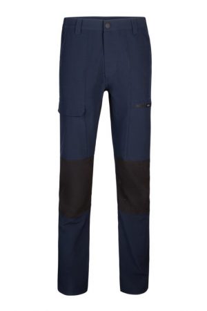 Pantalón de trabajo trekking bicolor stretch con corte slim fit, cintura elástica y múltiples bolsillos con cierre seguro. Ideal para actividades intensas.