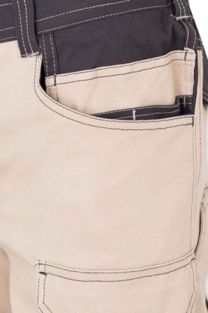 Bermudas de trabajo canvas stretch bicolor con bolsillos flotantes y cinturilla elástica. Perfectas para tareas que requieren flexibilidad y comodidad.