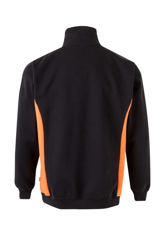 Sudadera de cuello alto con media cremallera y felpa perchada. Con detalles en contraste, puños y cintura en canalé y tratamiento antipilling, es ideal para confort y estilo en el trabajo diario.