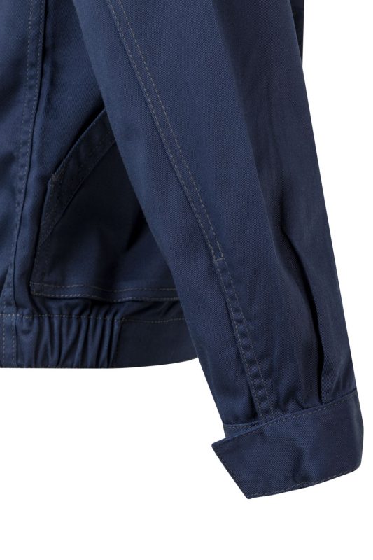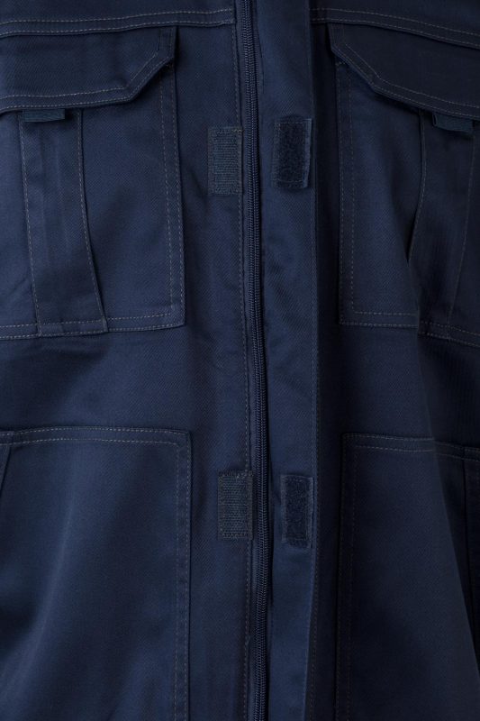 Cazadora stretch con múltiples bolsillos, cierre con velcro y cintura elástica. Diseño resistente y cómodo para jornadas intensas de trabajo.