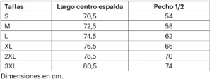 - 1 bolsillo en la manga izquierda con tapeta y velcro