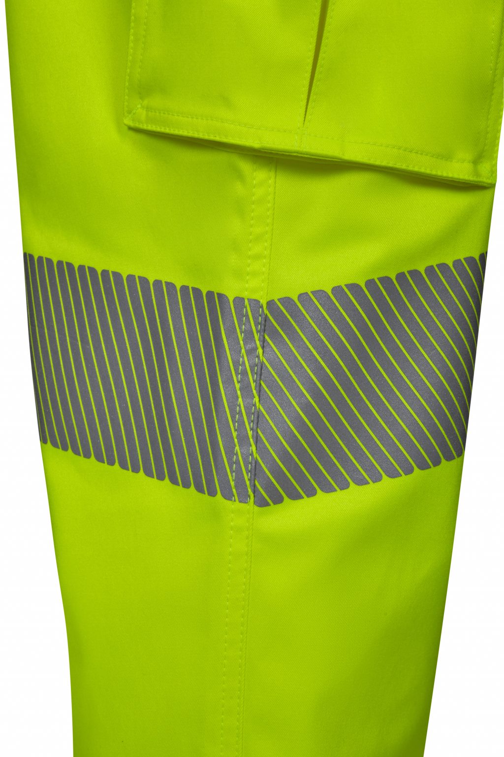 Pantalón stretch con cinta segmentada termofijada para máxima visibilidad, flexibilidad y resistencia. Cumple normativa EN 20471 Clase 2.
