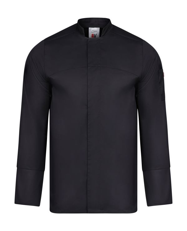 Chaqueta de cocina profesional de manga larga con cierre oculto y diseño limpio. Comodidad, estilo y funcionalidad para el día a día en cocina.