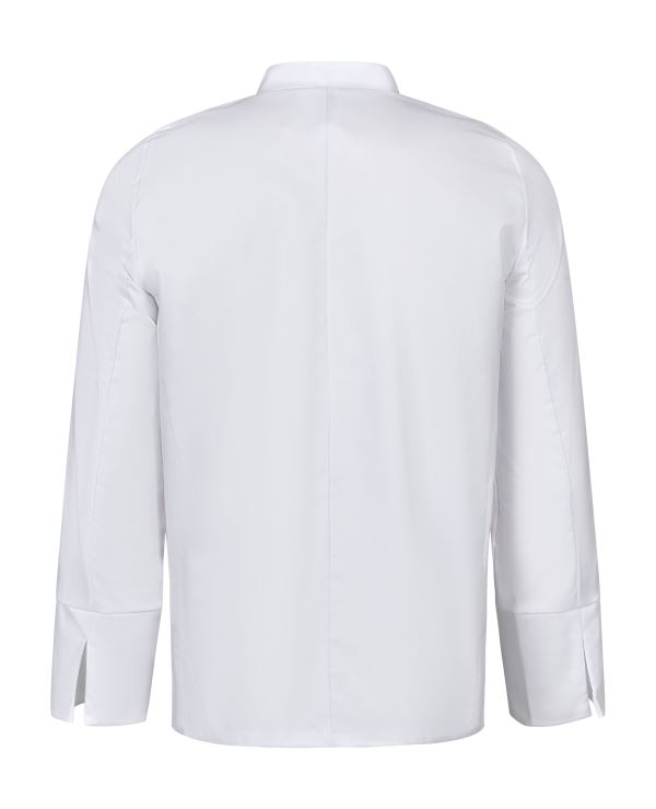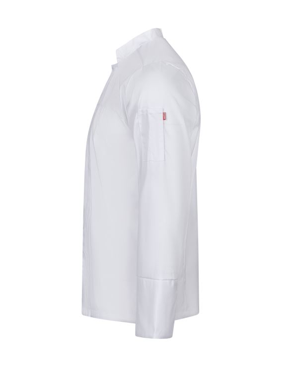 Chaqueta de cocina manga larga stretch, avec cierre central et botones automáticos. Confort et flexibilité para los profesionales de la cocina.
