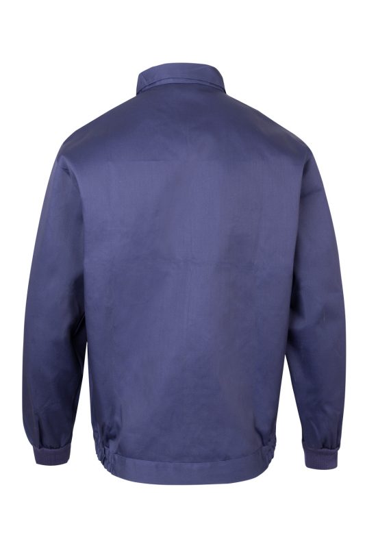Cazadora de trabajo clásica con cremallera central, cintilla lateral elástica, puños de canalé y bolsillos con cremallera. Ideal para entornos de trabajo exigentes.