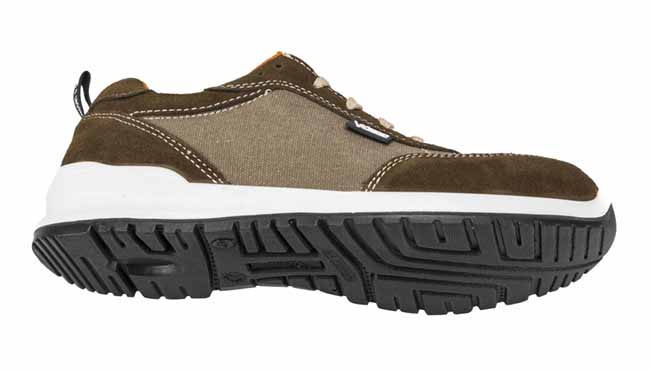 Calzado de seguridad S1P sin metal, con puntera composite, plantilla textil, corte en canvas y serraje, suela PU y propiedades antiestáticas