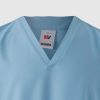 Camisola de microfibra manga corta con cuello en pico, tratamiento antibacterias y tejido repelente de líquidos. Funcional y ligera, ideal para uso profesional.