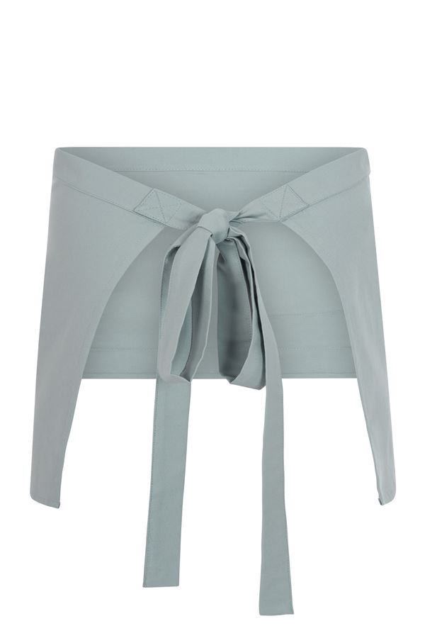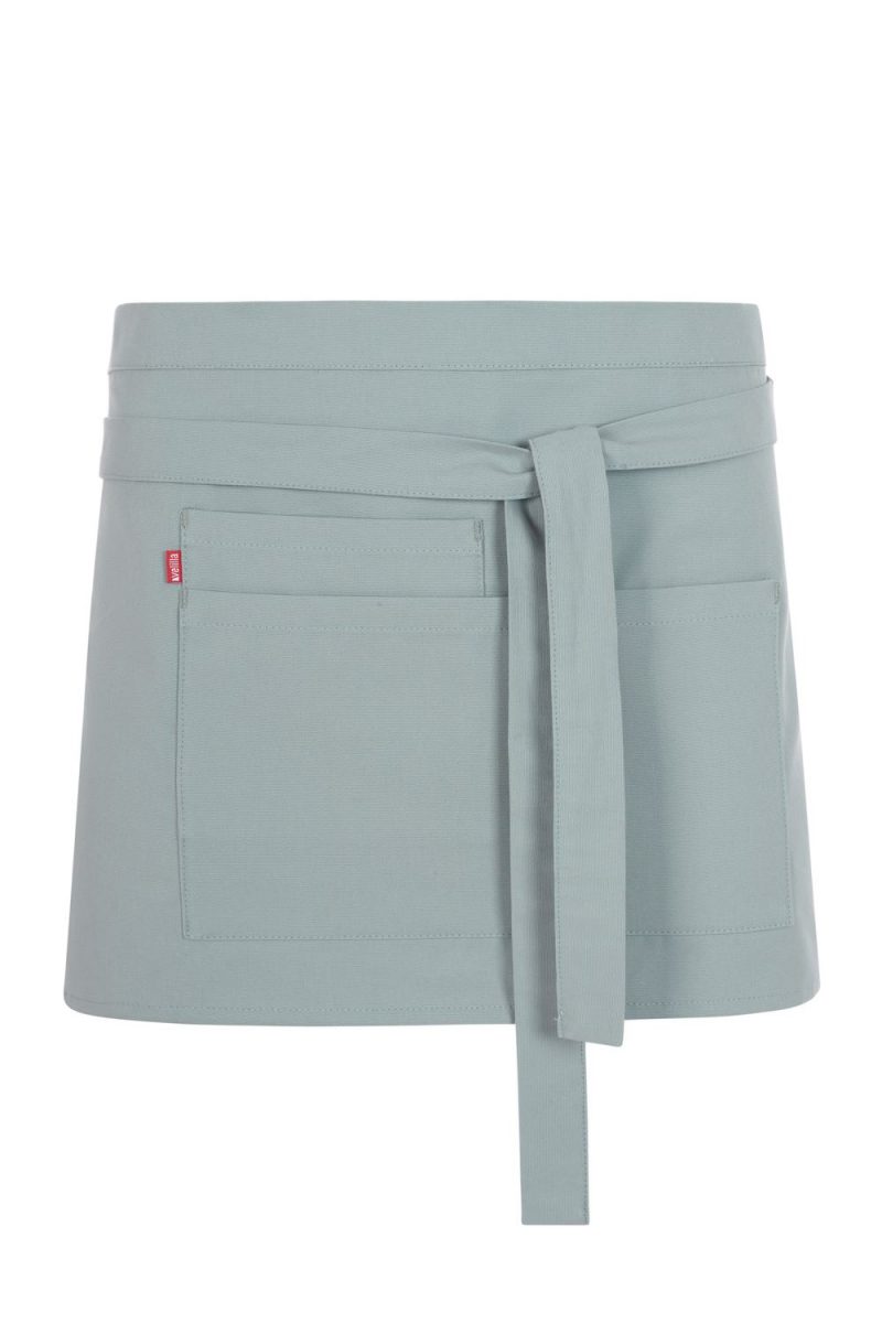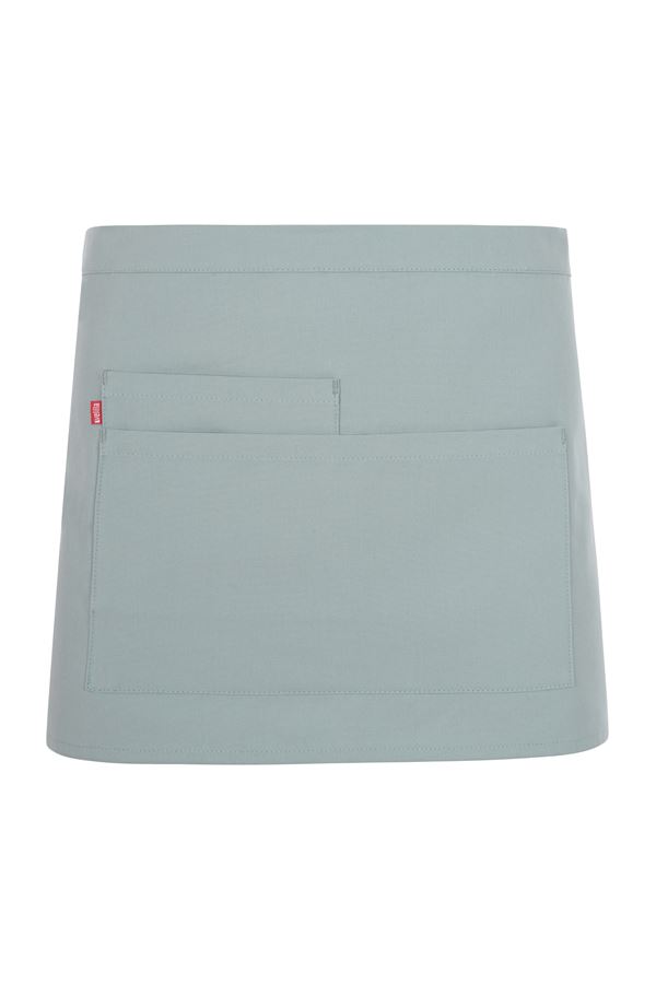 Delantal corto ecológico con ajuste multiposición y tejido repelente, ideal para profesionales que valoran funcionalidad y sostenibilidad en su uniforme.