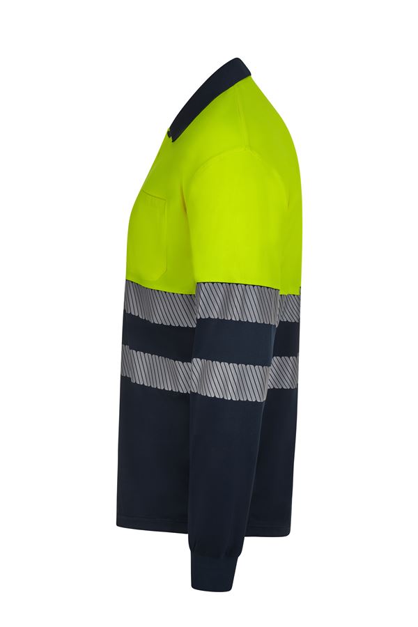 Polo alta visibilidad poliéster reciclado bicolor manga larga cintas reflectantes segmentadas 305535 | VELILLA