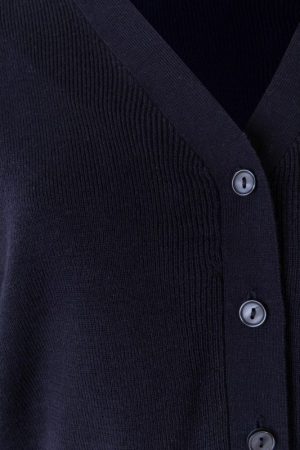 Chaqueta de punto fino para mujer con cierre de botones, bolsillos de parche, tratamiento antipilling y acabados en canalé. Gama Clásicos.