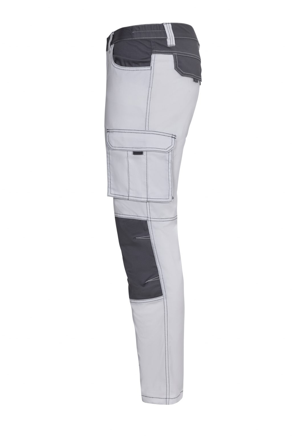 Pantalón bicolor stretch de corte slim fit con refuerzos en rodillas y parte trasera. Cómodo, resistente y con diseño moderno para uso profesional.