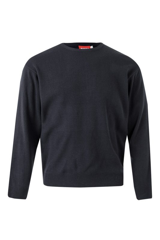Jersey de punto fino con cuello redondo, tratamiento antipilling y acabados en canalé en puños, cuello y cinturilla. Gama Clásicos.