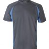 Camiseta técnica bicolor con cuello redondo, costuras reforzadas y detalles en contraste. Ideal para deportes y entornos dinámicos. 100% poliéster.