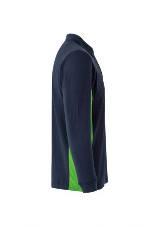 Polo bicolor de trabajo manga larga con detalles en contraste, cuello y puños de canalé, y cierre de botones. Tejido piqué de alta calidad. Gama Total Match.