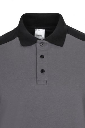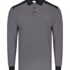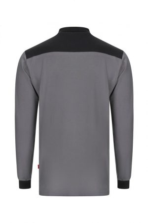 Polo bicolor de trabajo elástico de manga larga con contraste en canesú, cuello y puños de canalé, aberturas laterales y cierre con botones. Gama Solid Match.