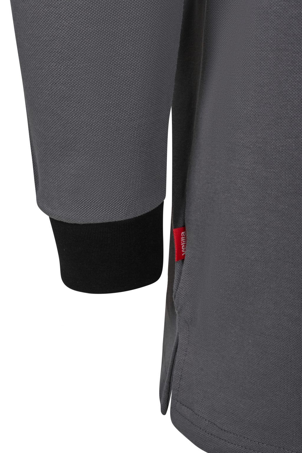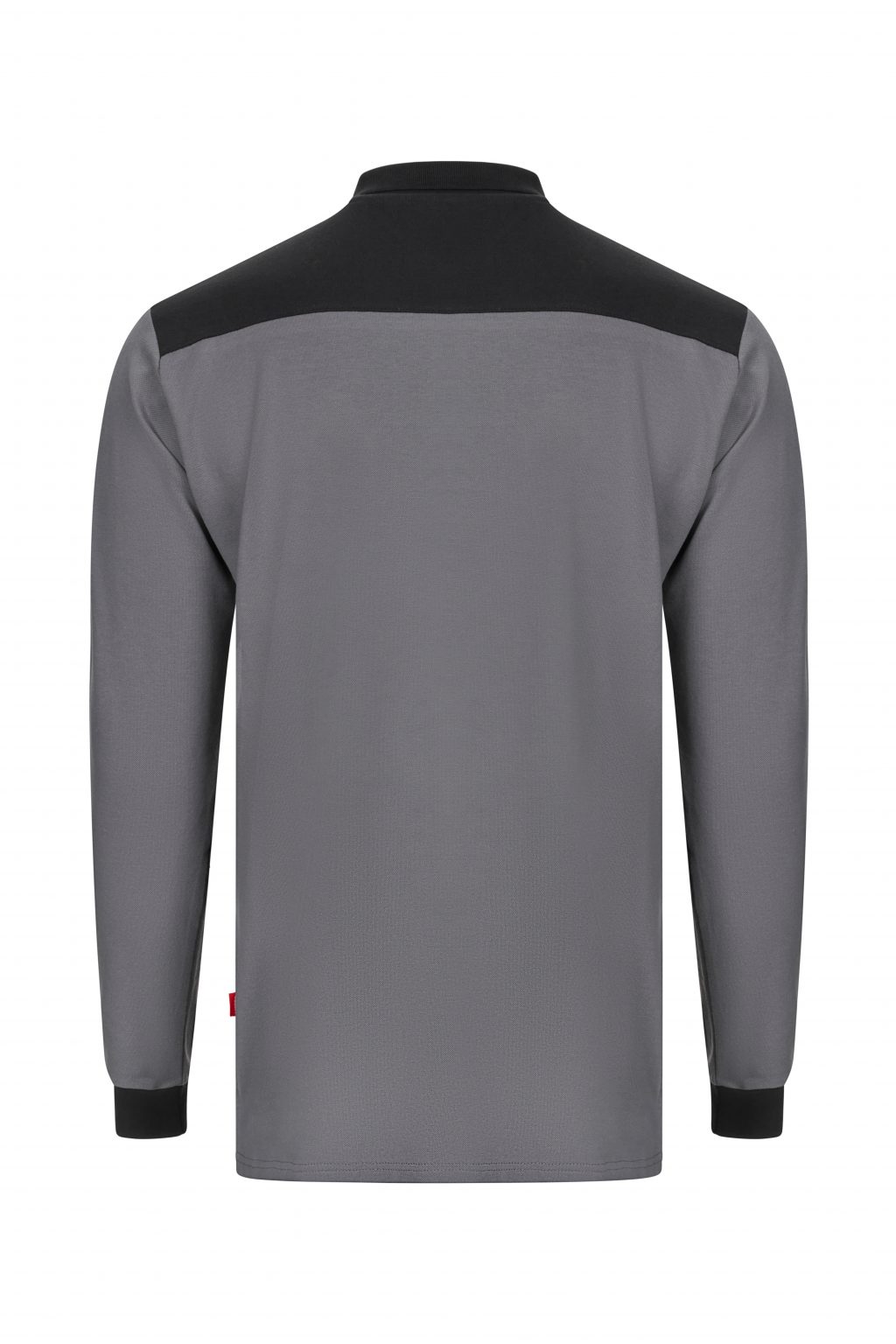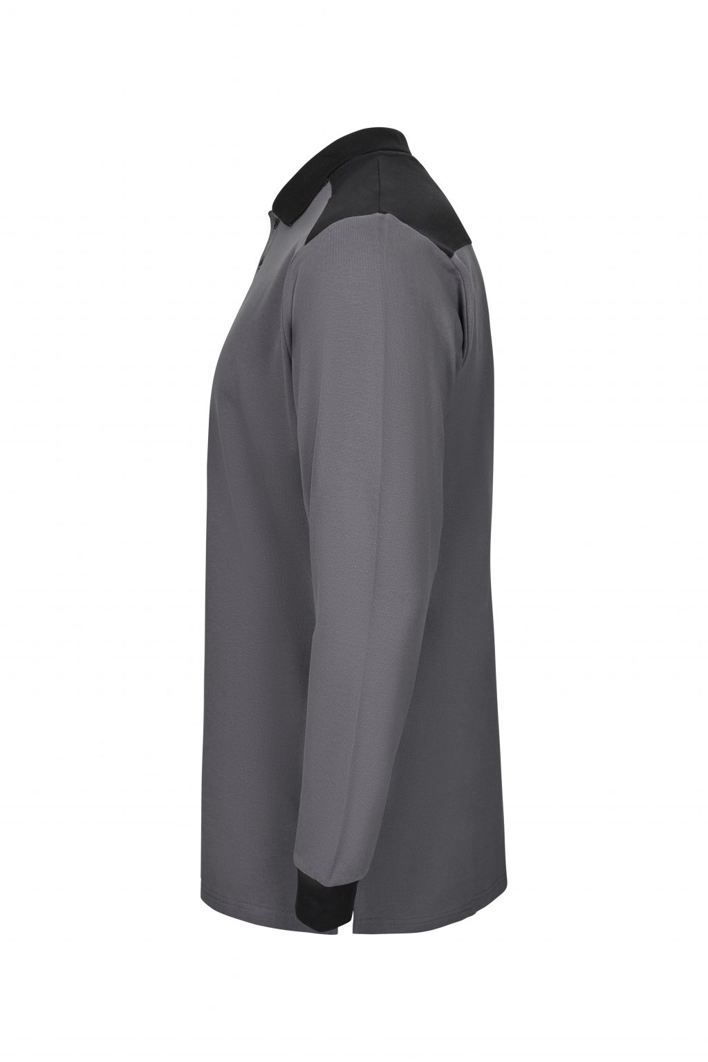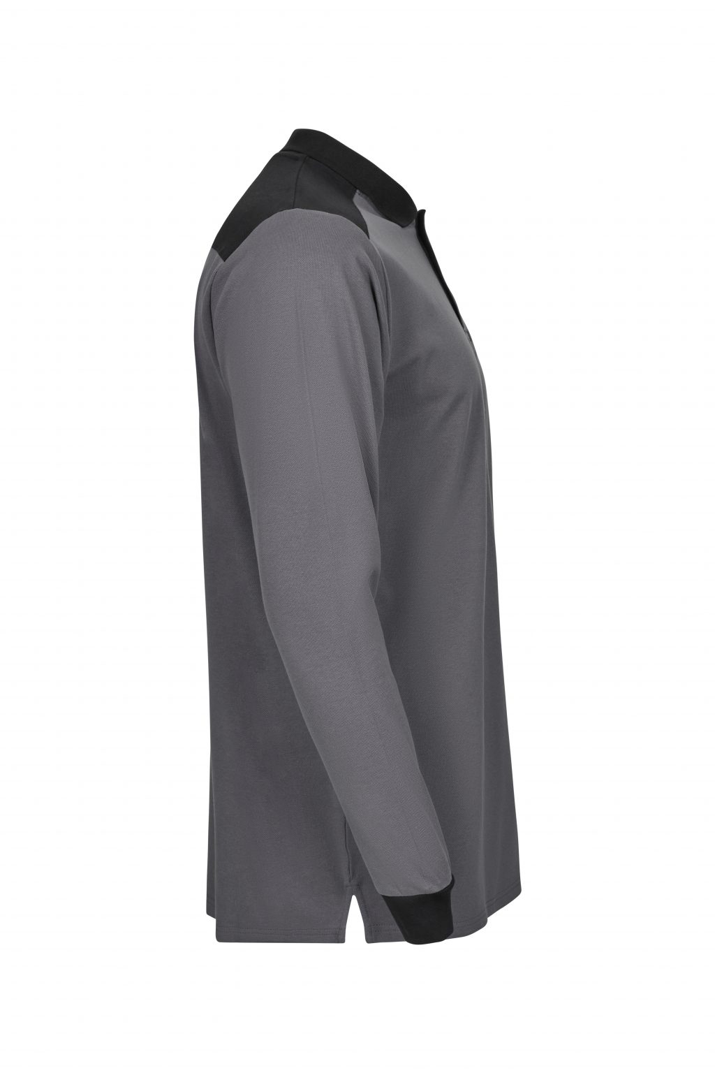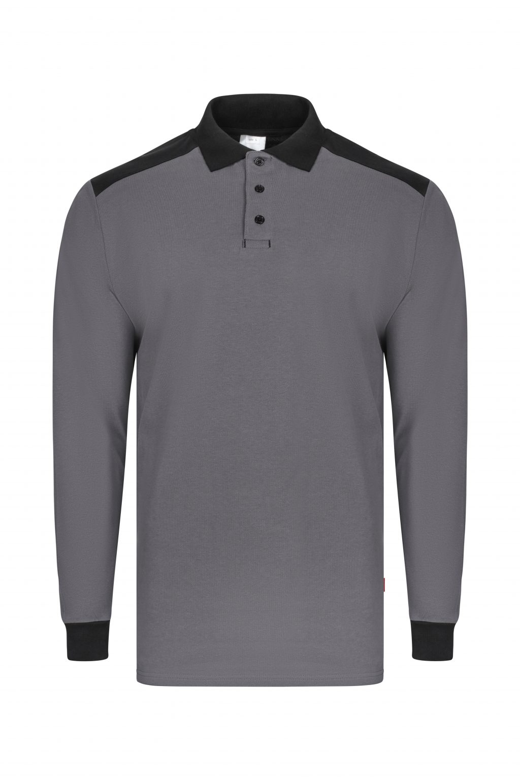 Polo bicolor de trabajo elástico de manga larga con contraste en canesú, cuello y puños de canalé, aberturas laterales y cierre con botones. Gama Solid Match.