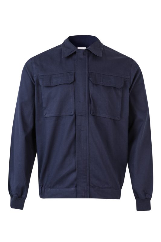 Cazadora 100% algodón con cremallera oculta, tapeta con velcro, puños de canalé y bolsillos funcionales. Ideal para trabajos exigentes.
