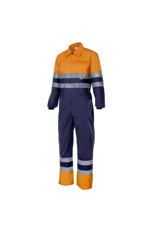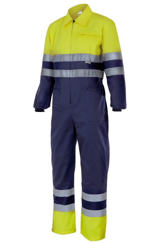 Mono bicolor alta visibilidad con cintas reflectantes y bolsillos 151 | VELILLA