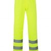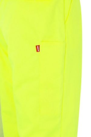 Pantalón de alta visibilidad con cintas reflectantes en el bajo y múltiples bolsillos, ideal para entornos de trabajo que requieren visibilidad y comodidad.