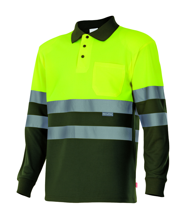 Polo bicolor alta visibilidad manga larga con cintas reflectantes 175 | VELILLA