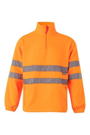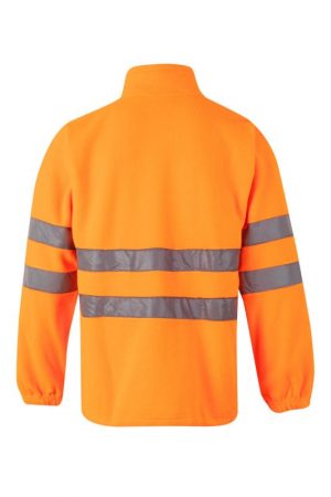 Forro polar de alta visibilidad con cintas reflectantes, puños elásticos, bajo ajustable y bolsillos con cremallera. Ideal para condiciones frías y poca luz.