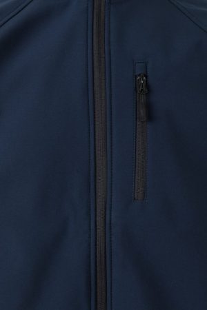 Cazadora soft shell de triple capa con mangas raglán, cierre invertido en contraste, cinco bolsillos y puños ajustables. Gama Outerwear.