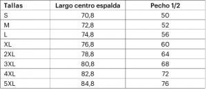 - Tejido Piqué: 55% algodón – 45% poliéster / 150 g/m²