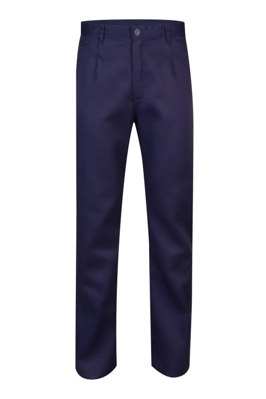 Pantalón básico con tres bolsillos, costura de seguridad y pinzas para mayor comodidad y ajuste.