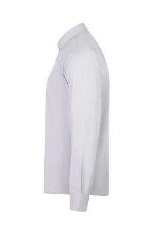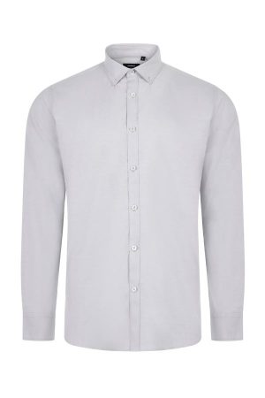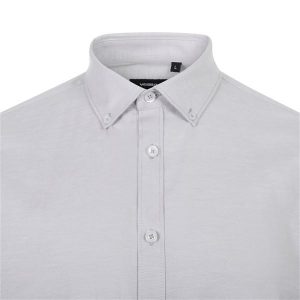 Camisa oxford elástica para hombre, con cuello abotonado y corte entallado. Ideal para personal de hostelería que busca elegancia y confort.