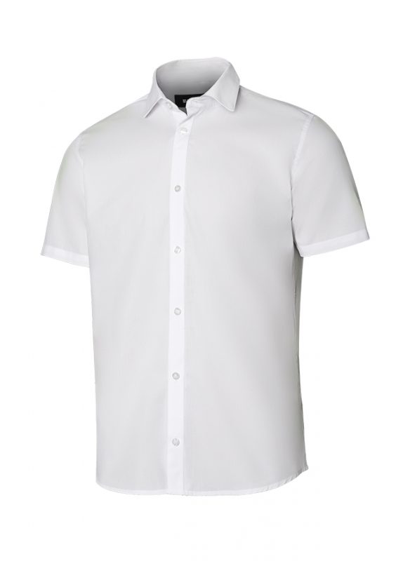 Camisa de manga corta ideal para profesionales de la hostelería. Diseño elegante y cómodo para largas jornadas de atención al cliente.