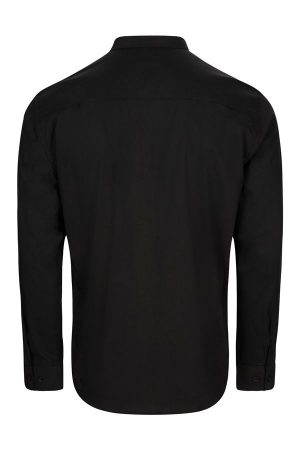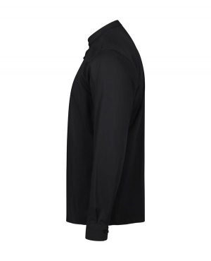 Camisa de manga larga con tejido elástico y cuello tirilla. Ideal para un look moderno y profesional en hostelería.