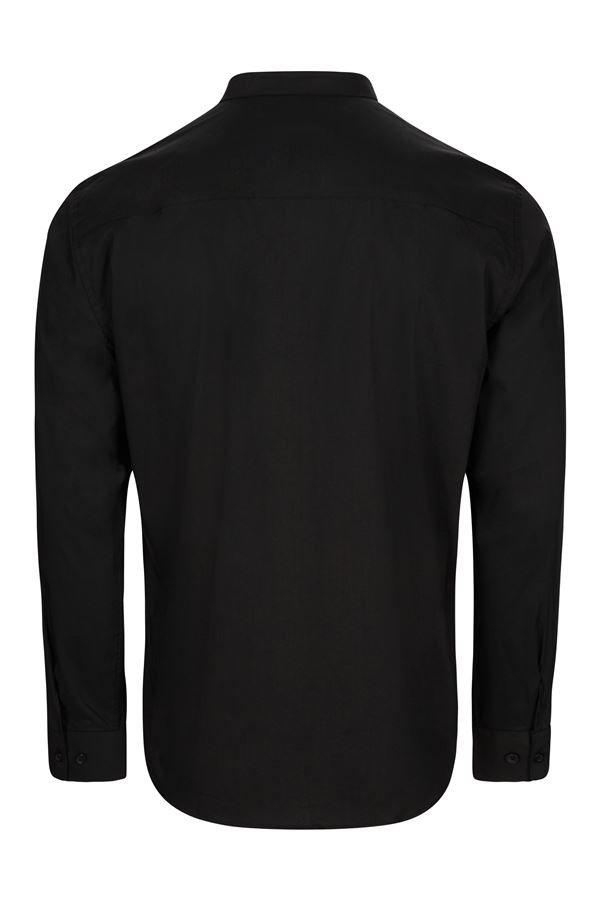 Camisa de manga larga con tejido elástico y cuello tirilla. Ideal para un look moderno y profesional en hostelería.