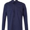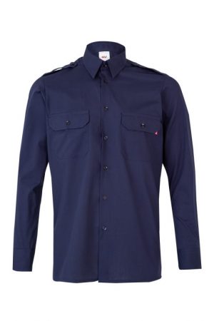 Camisa de trabajo manga larga con galoneras abotonadas, puños clásicos y bolsillos con tapeta. Ideal para uniformes. Tejido popelín ligero. Gama Clásicos.