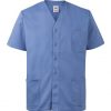 Chaqueta pijama de manga corta con cierre de botones, cuello en pico y tres bolsillos funcionales. Ideal para uso profesional cómodo y práctico.