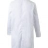 Bata unisex de sarga con cierre central de botones, tres bolsillos y abertura trasera. Ligera, resistente y apta para uso profesional diario.
