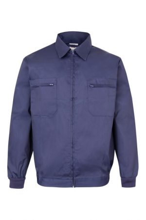 Cazadora de trabajo clásica con cremallera central, cintilla lateral elástica, puños de canalé y bolsillos con cremallera. Ideal para entornos de trabajo exigentes.