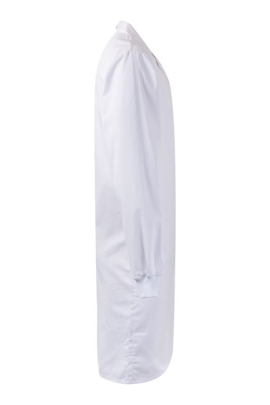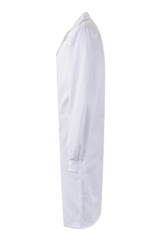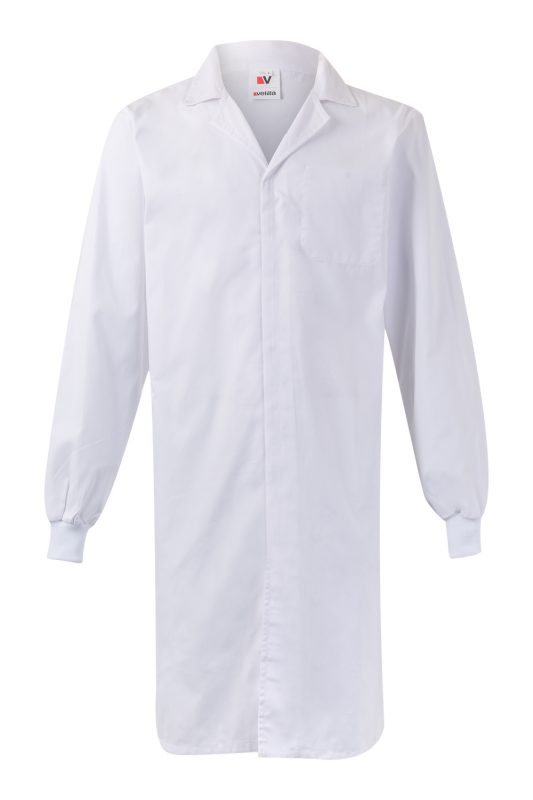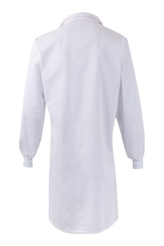 Bata profesional con cierre de velcro oculto, puños de canalé y bolsillo interior. Comodidad, funcionalidad y estilo para uso diario.