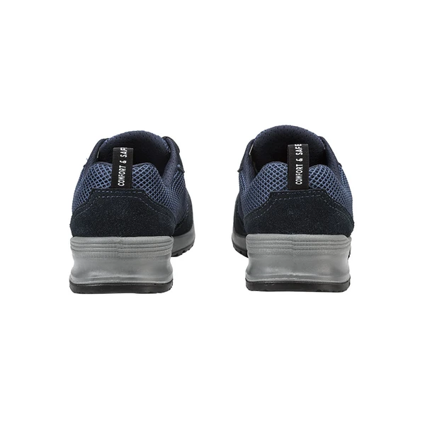 Zapato de seguridad S1P ESD, sin metal, con puntera de composite, plantilla textil, corte malla + serraje y suela PU doble densidad. Transpirable y cómodo.